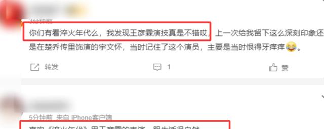 在评论区中,大把的观众都在为王彦霖的演技啧啧称赞。