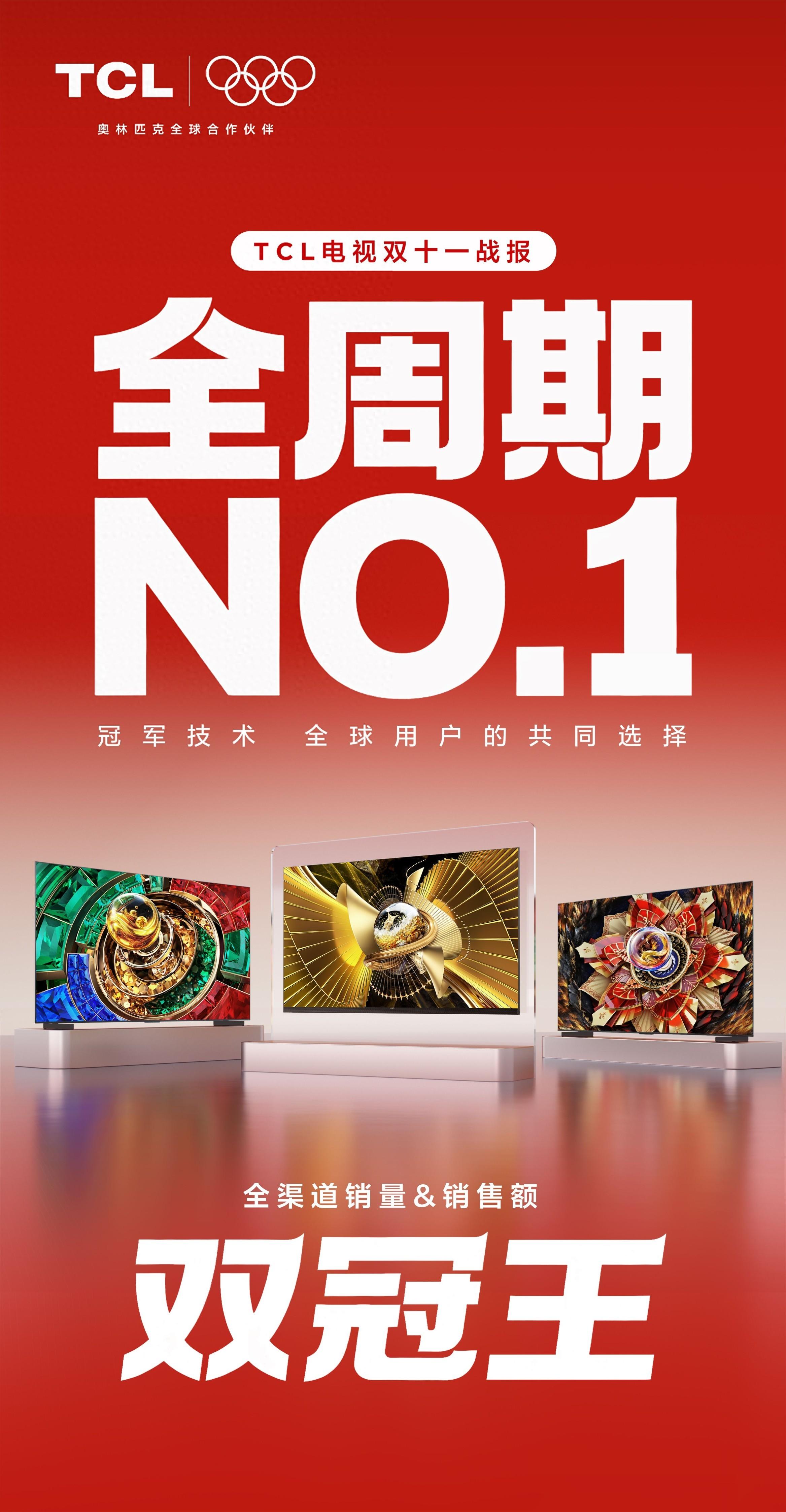 一年一度的双十一刚收尾,我盯着各大家电榜单看了半天,发现电视品类直接被TCL“承包”了——不拿下全周期NO.1,还是全渠道销量、销售额双冠王,这势头真的有点猛!