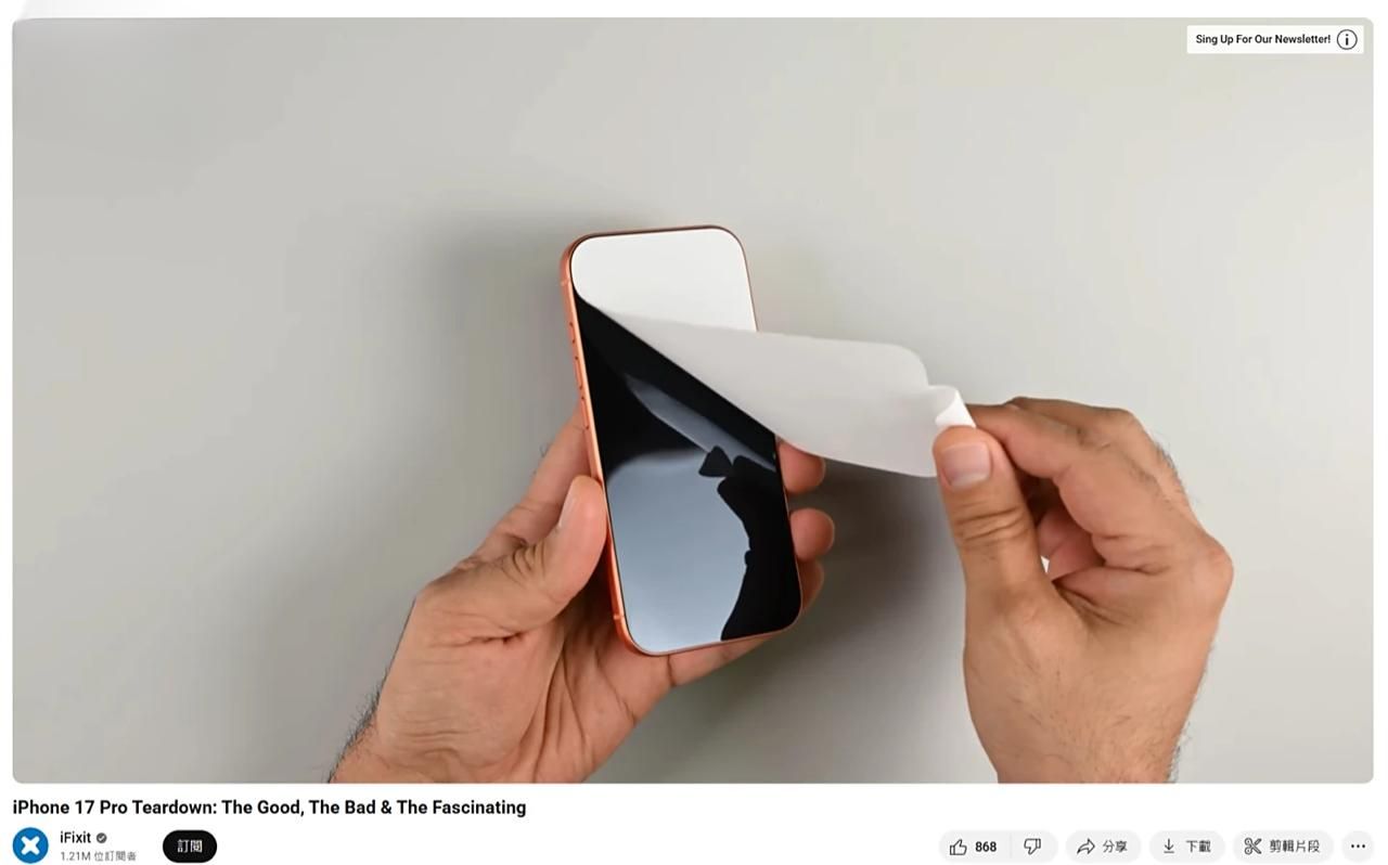 8️⃣ iFixit拆解iPhone 17 Pro,可维修性7分
