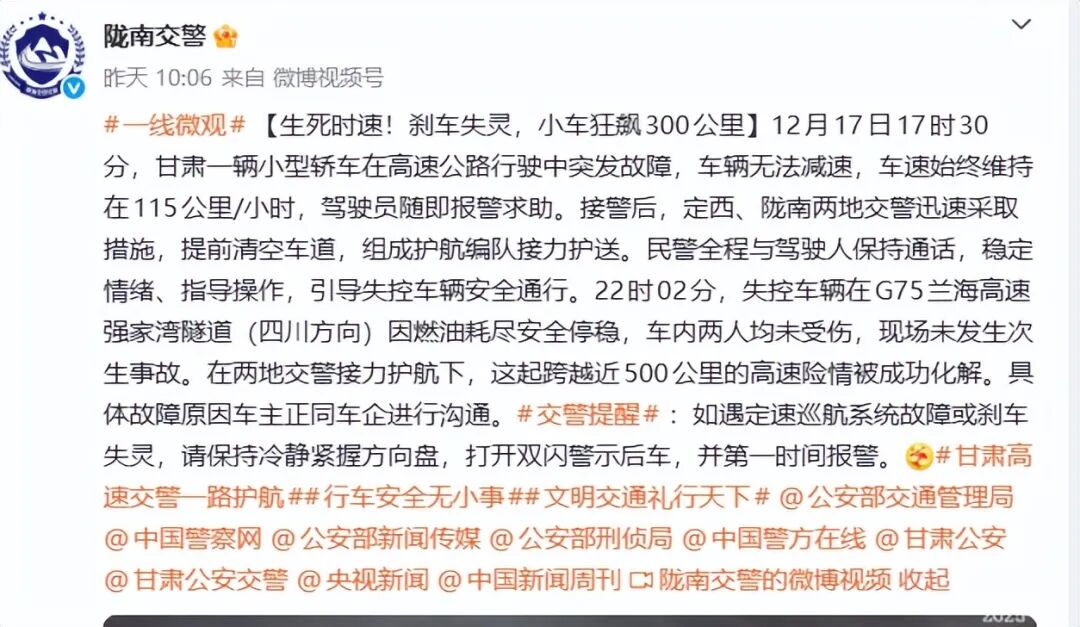 据当事司机回忆,事发时他正驾驶车辆在高速上行驶,开启定速巡航后将速度设定在115km/h,本想轻松应对长途路程,意外却突然降临。“发现踩刹车无法减速时,我整个人都懵了,赶紧打了报警电话,同时联系了4S店的技师。”按照技师远程指导的方法,他反复尝试操作,无论是拨动巡航关闭拨杆,还是拉动电子手刹,都没能让车辆停下。