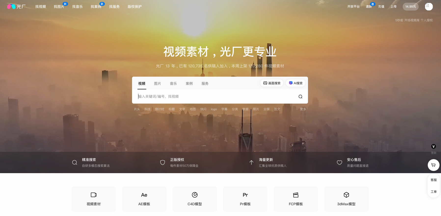 光厂(vjshi.com)光厂作为国内领先的创意素材平台,自2012年创立以来,已成为中国大陆地区音视频素材领域独角兽