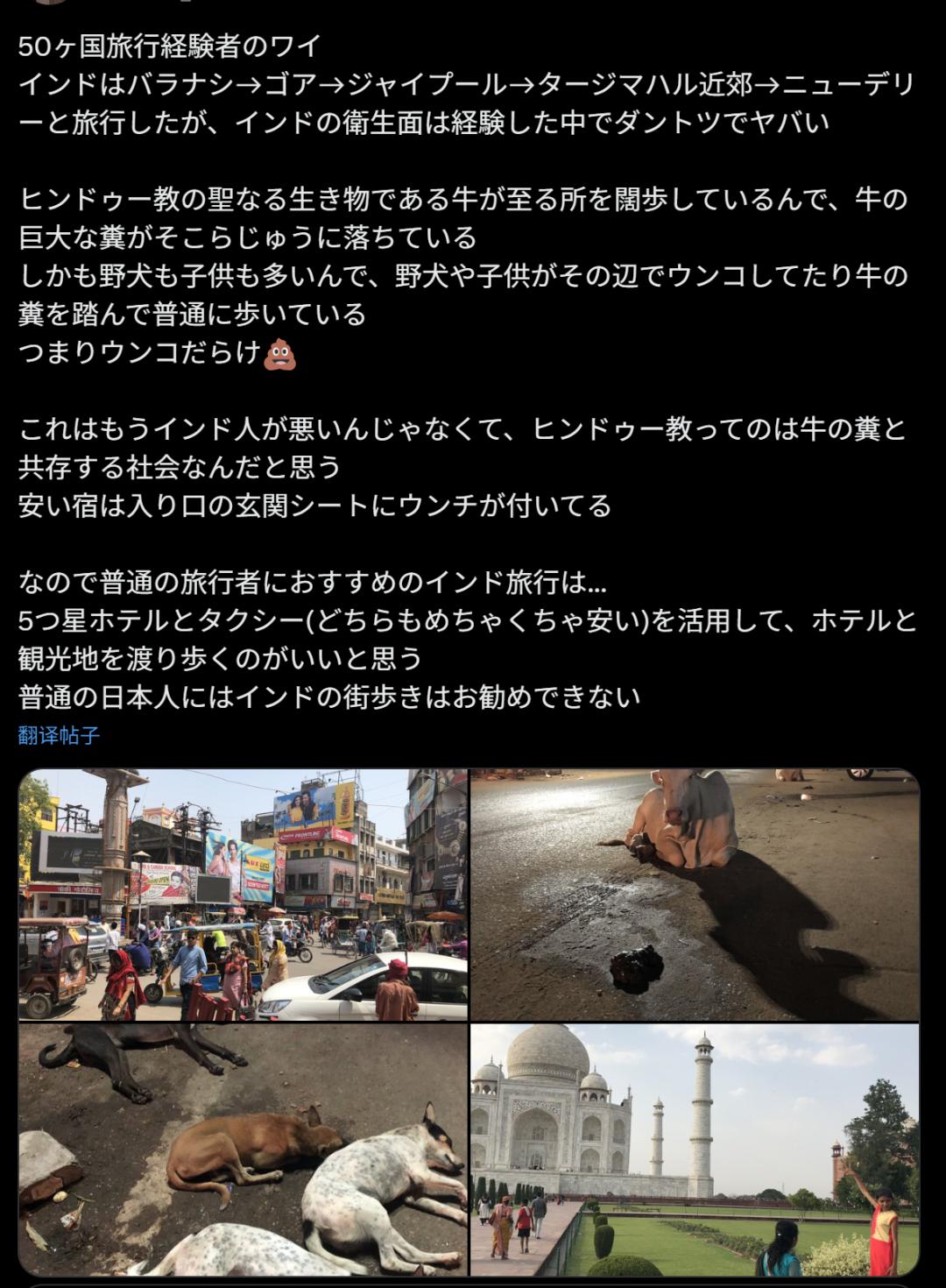 “印度到处都是牛粪,去过50个国家,印度是卫生情况最差的”: