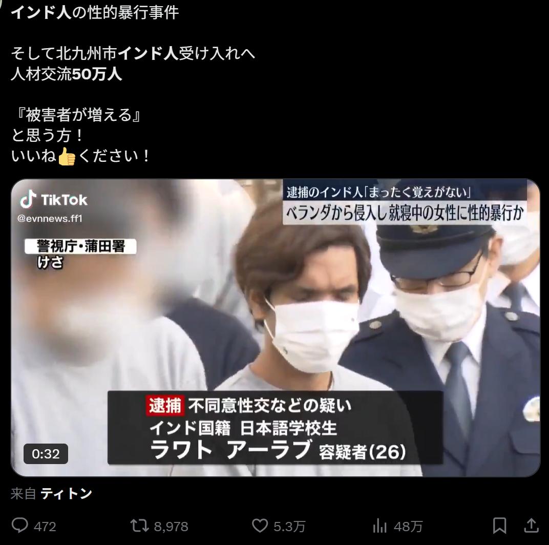 网上的反对活动也闹得轰轰烈烈。印度留学生近期在日本爬进宿舍侵犯女同学的新闻被网友们疯狂转发,很多人赞同印度是“侵犯大国”的说法,大量引进印度人会威胁到日本女性的安全。