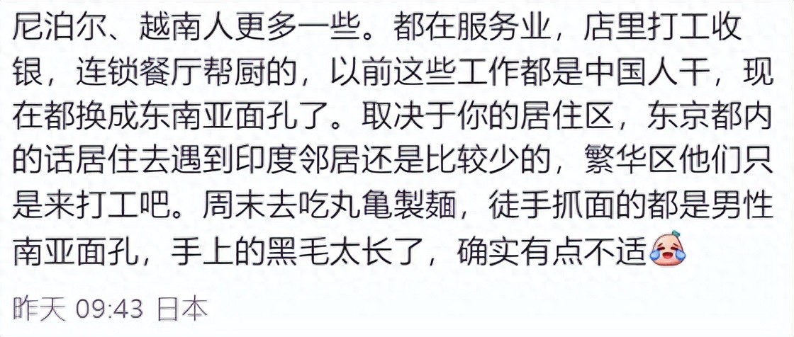 刚刚过去的假期,如果你留意一下去日本玩的网友们的吐槽会发现,日本的便利店、餐厅里多了不少东南亚、南亚服务人员的面孔。