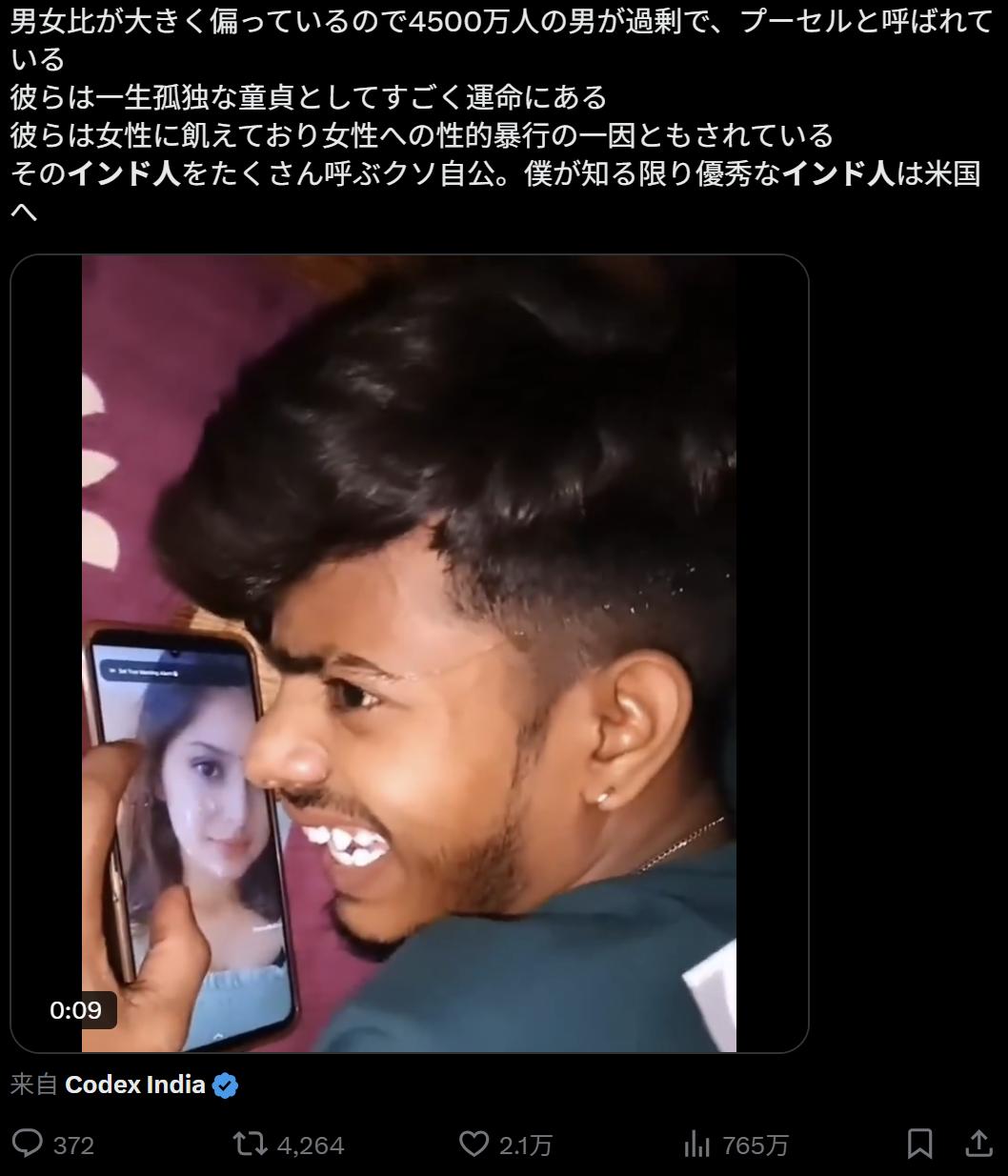 “印度男女比例严重失衡,男性数量超过女性4500万导致异常饥渴,是女性遭受侵犯的元凶”: