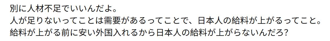 但目前来看,日本人的工资不会上涨了,因为廉价的外国劳动力在工资上涨之前就会被引进了...”