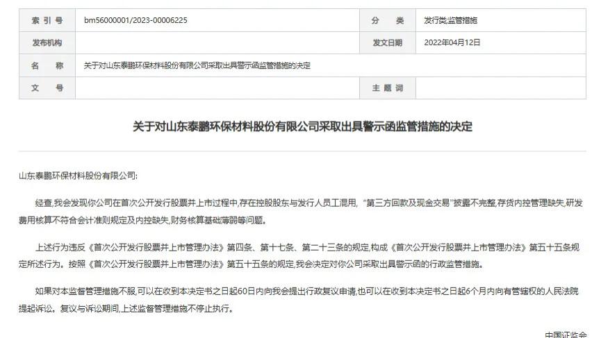 泰鹏环保IPO:前次申报曾收警示函,7名实控人“共治”合理性遭问询,高毛利与低研发引质疑