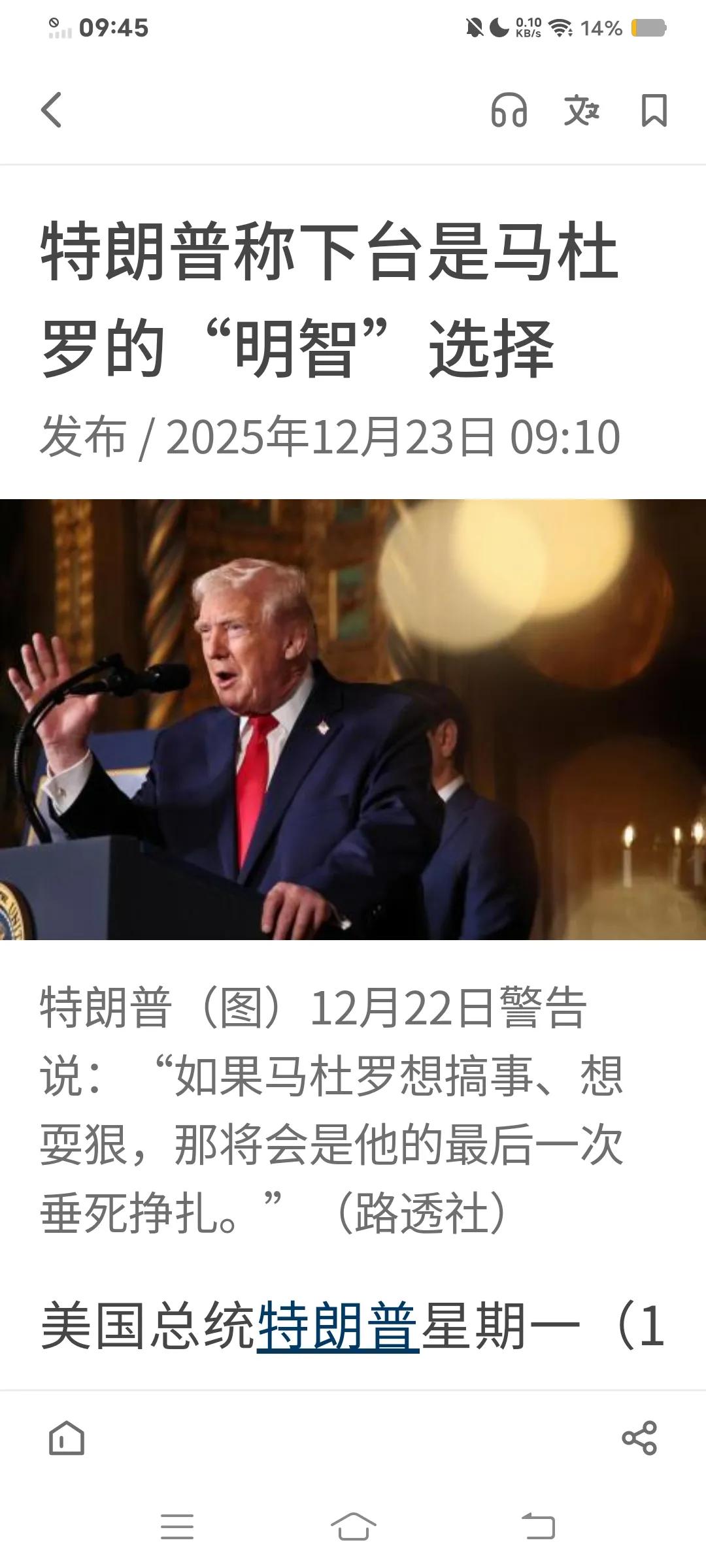美国委内瑞拉打不起来 据美国媒体星期五(12月19日)报道,美国总统特朗普在接