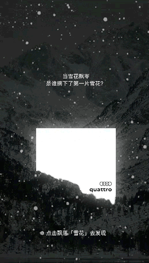 通过「点击移动元素后放大消失展开」与「连续点击左右交叉飘落切换」的交互设计,将奥迪quattro四驱系统的传奇历史与冰雪场景深度绑定。用户每一次点击都推动故事递进,在探索中感受品牌技术传承。