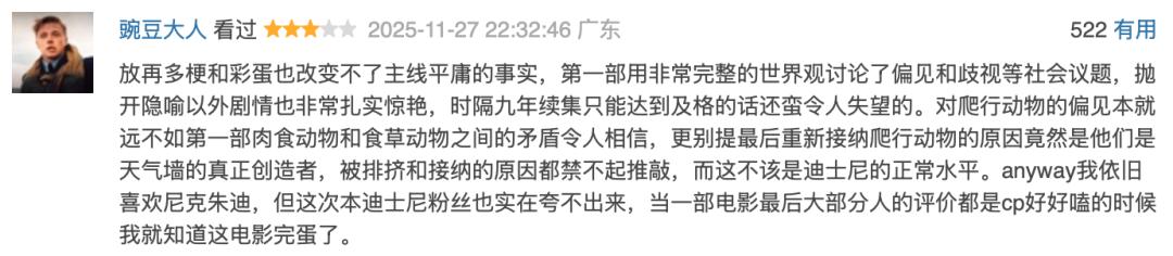△ 不喜欢的观众认为《疯狂动物城2》不值得苦苦等待九年