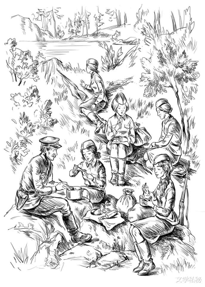 可以说,整个小说里,五个女兵与准尉,都是生活在一个健康与自由、没有内卷与相互伤害的环境中,他们可以一致对敌,而没有内部的裂痕。这在苏联小说里写到斯大林时代都要提及社会创伤的文学体系里是少见的。