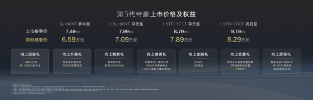 作为首款基于新一代BMA Evo全球模块化架构打造的全新车型,第5代帝豪在颜值、舒享、安全、驾控、智能五大维度实现全面进阶,完成从底层基因到用户体验的系统性革新,开启“世界家轿 中国帝豪”全新征程,引领中国燃油家轿跃升一代!