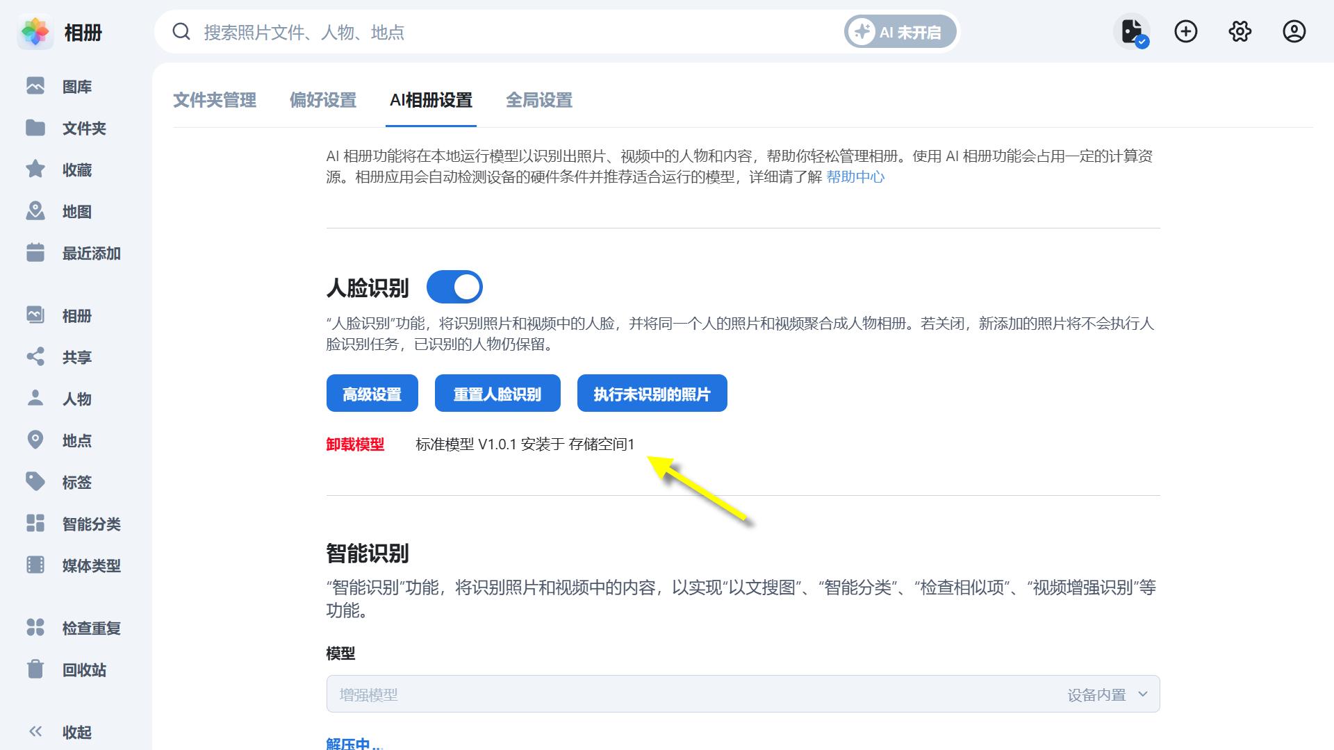 一键安装飞牛相册后,已集成了本地AI模型,方便使用。