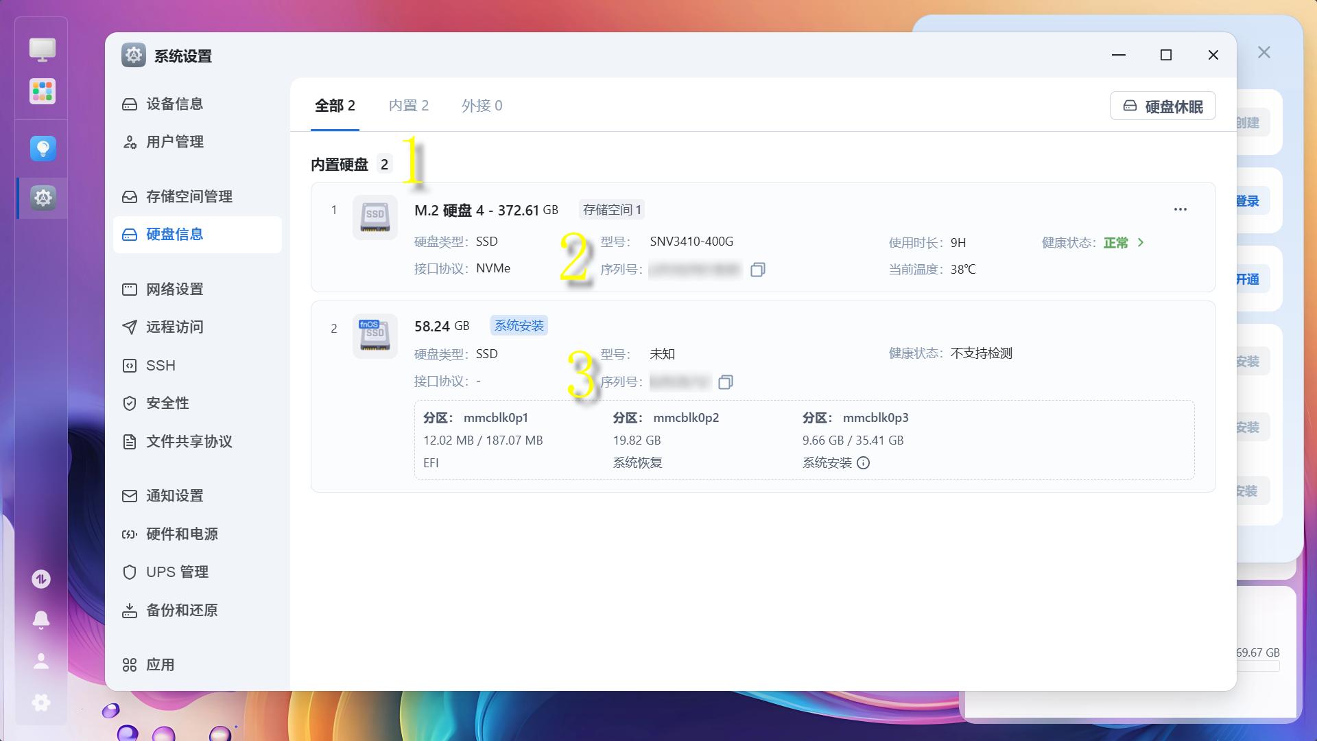 1,当前共有2块内置硬盘(零刻ME mini也支持通过USB外接硬盘)。