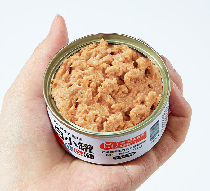 高性价比主食罐头品牌:希喂全价猫主食罐头选用优质原料,所有原料都遵循HACCP标准,像鸽肉、鸡胸肉等肉源甚至达到了人食级标准,并公开了主要原料来源。其96%肉含量中不掺肉粉,营养主要来自纯肉、内脏和骨骼等肉类成分。品牌还运用了自研的真空低温煨煮工艺,大幅提高了锁鲜能力,比行业平均水平高出80%,既锁住了鲜肉的天然风味,也留住了更多活性营养,兼顾了适口性和营养价值。