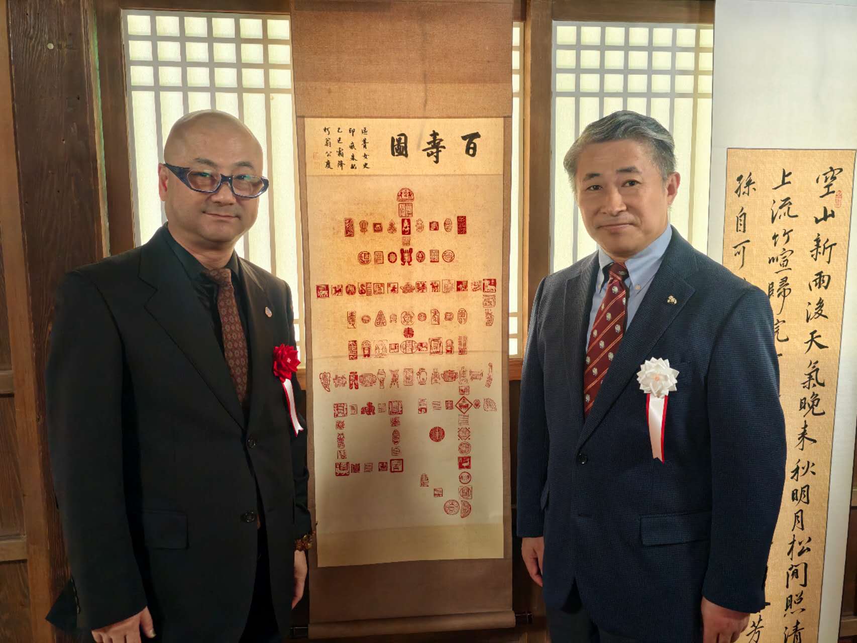 它能立在万福寺的展壁间,本就是一场文化的双向奔赴:黄檗山的禅风曾随隐元禅师东渡,如今这百寿的吉意,又循着同一脉文化的余温归来。驻大阪总领事薛剑赞叹:"弱小女子刻就的精绝。"这不仅是对刀工的褒奖,更是对东方女性以金石载道的温柔力量的礼敬。联合国NGO太平洋地区发展与教育组织总干事长赵元洪为排版与寓意的筹谋,让"寿"超越了单一的祈愿,成为中日文化里"长命""恒远""和融"的共通语汇。