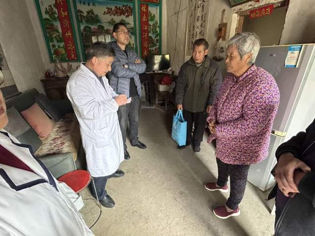 考虑到部分高龄、行动不便的老人无法到场,工作队与医院组建了“送医到家”专项小组,带着便携式检查设备,专程前往韩呈华、贾翠霞、薛崔平、韩恒新、皮秀英、董俊香等6位老人家中。医护人员不仅为他们完成血压血糖测量、心肺听诊等基础检查,还根据身体状况调整用药方案,手把手教家属日常护理要点,将“健康守护”延伸到老人生活的最后一米。