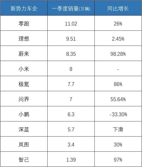 真正让市场意外的是蔚来。一季度同比增长92.3%,增速位居新势力第一。这一轮增长得益于蔚来ES8换代和乐道、萤火虫品牌的放量。经历了组织架构调整和成本控制的阵痛后,蔚来似乎在商业化和高端调性之间找到了一个微妙的平衡点。