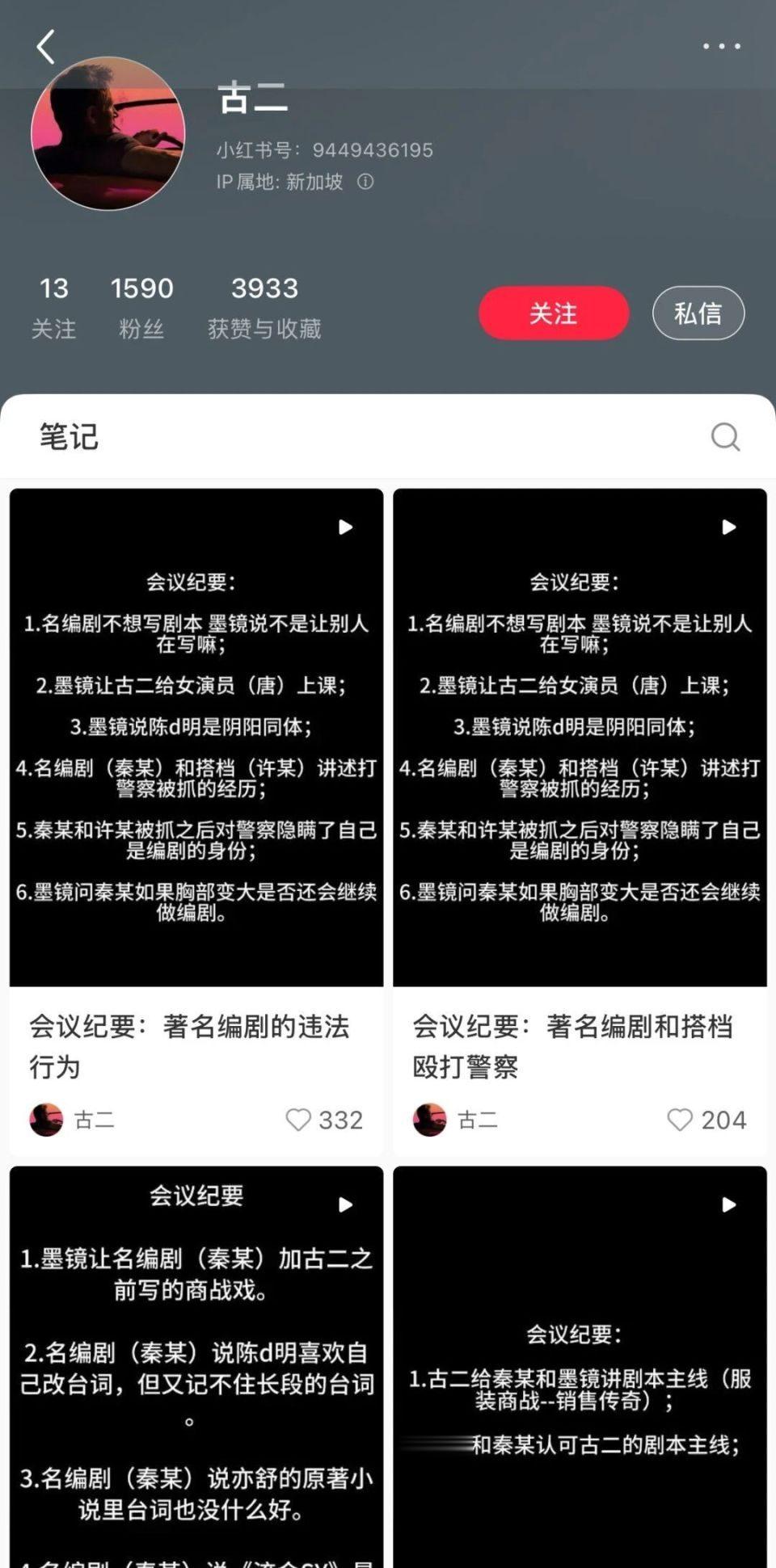 10月31日,青年编剧“古二”(程骏年)发布多段录音,相关话题冲上热搜!