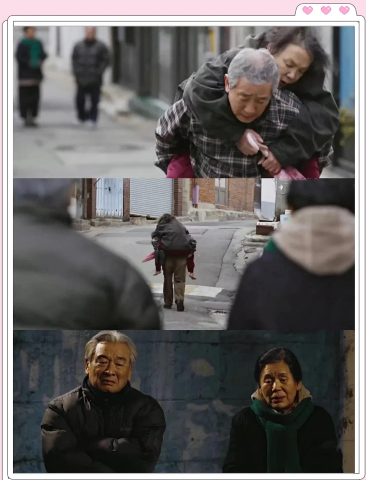 影片中,老金背着自己的妻子离去的背影,身后的两人里充满了羡慕,影片结尾,老夫妇在雪地中相拥而眠的画面、,将东方文化中"白头偕老"的承诺推向极致。阿尔茨海默病在此刻不再是悲剧符号,而成为考验爱情的终极试金石。当金万石在纸条上歪歪扭扭写下"美淑,吃饭"四个字时,这比任何钻石戒指都更接近婚姻的本质——在记忆的废墟上,用爱重建一座巴别塔。