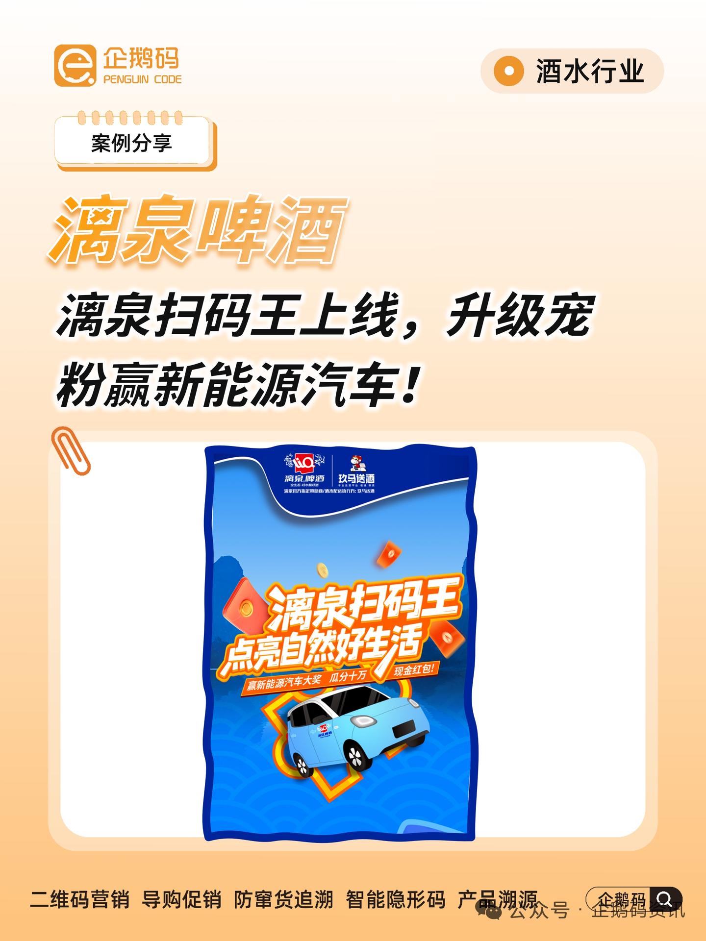 夏天的快乐,一半是冰镇啤酒给的。最近喝漓江啤酒时,发现瓶盖上多了个二维码,扫完才知道 —— 不仅有现金红包、免费啤酒,居然还能抽新能源汽车!