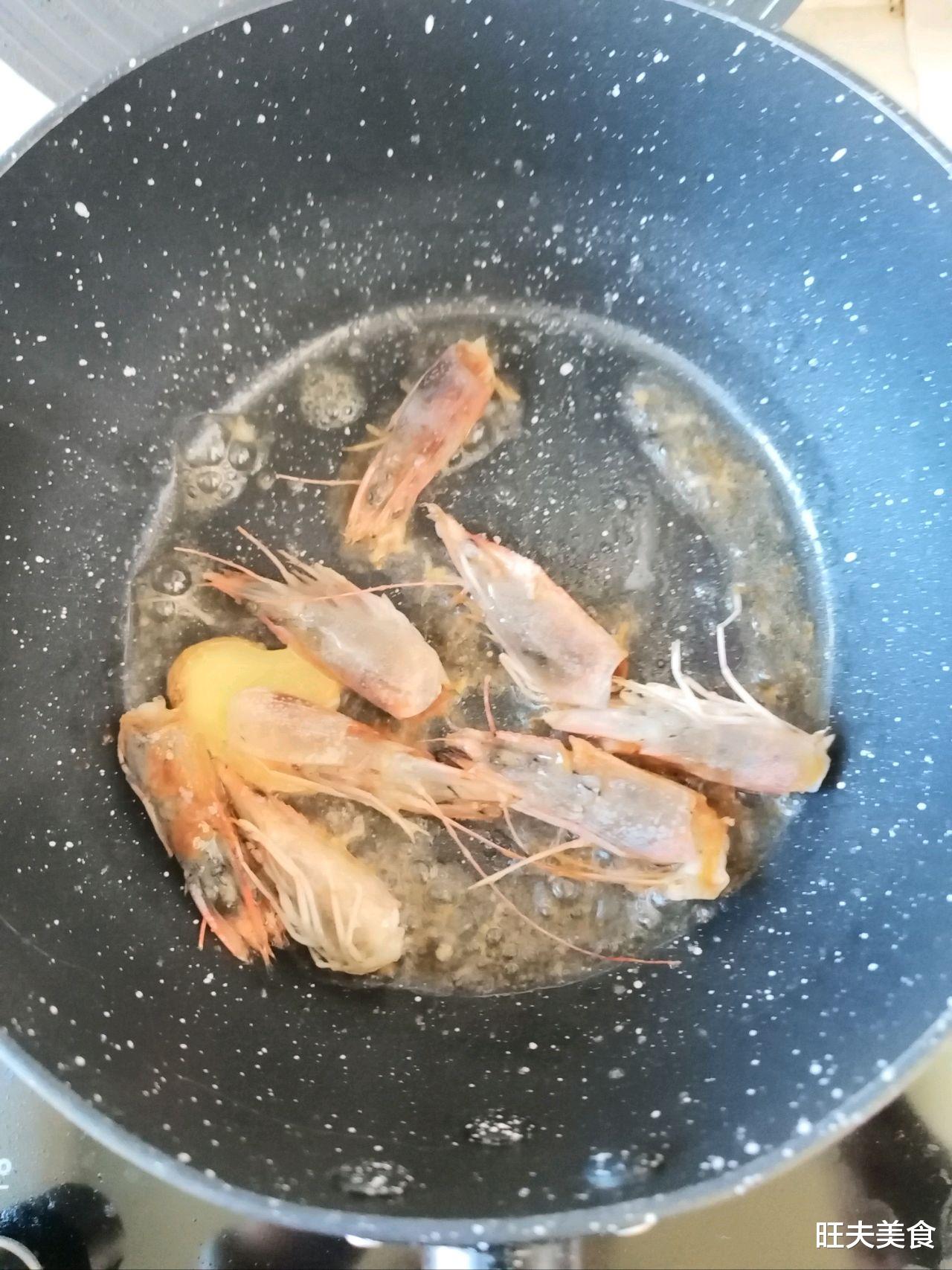 接下来,姜片和鲜虾头们进入锅中,它们开始煸炒,发出诱人的香气。煸炒的瞬间,独特的风味开始慢慢释放,勾起了食欲。