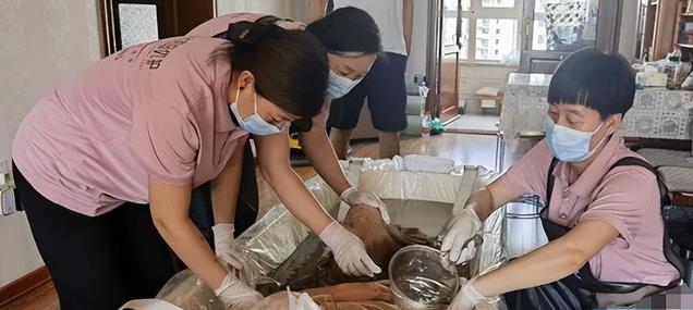 老人的子女之所以请到助浴师来到家里,就是想要子老人临走之前体体面面,干干净净的,毕竟因为疾病的原因,老人已经有超过半年没有洗过澡了!