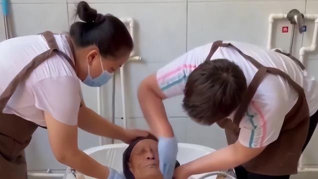 整个过程她们团队配合的相当顺利,虽然老人在洗澡的过程中,表情也曾发生过微妙的变化,但是她们能够感觉到,这是老人在享受这个过程。