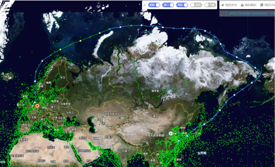而从北极航道,从东部沿海宁波港出发,沿着东海-黄海-对马海峡-宗谷海峡-鄂霍次克海-白令海峡-白令海-北冰洋-楚科奇海-东西伯利亚海-拉普捷夫海-喀拉海-巴伦支海-大西洋,最终前往英国费利克斯托港,航程只需约20天左右。