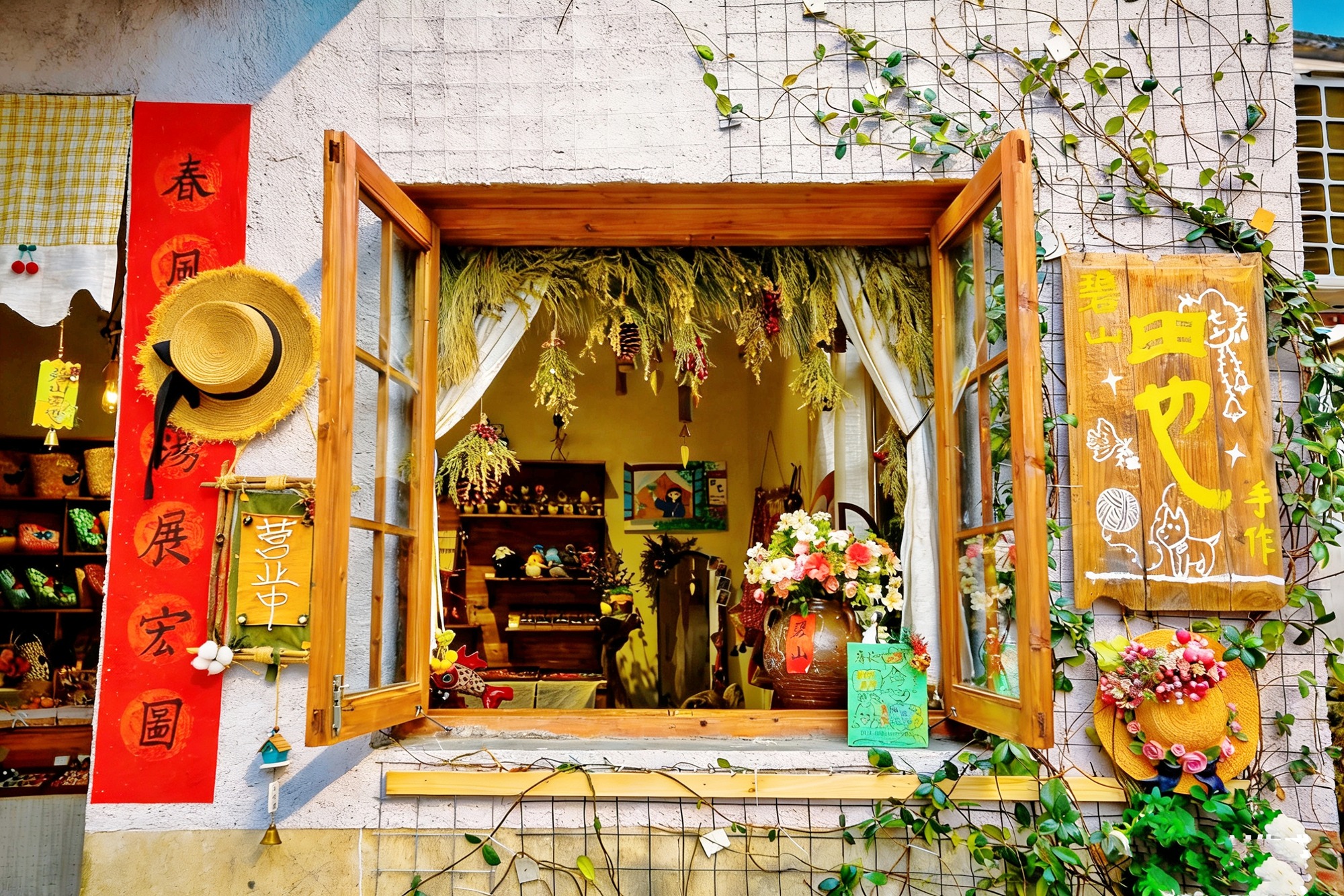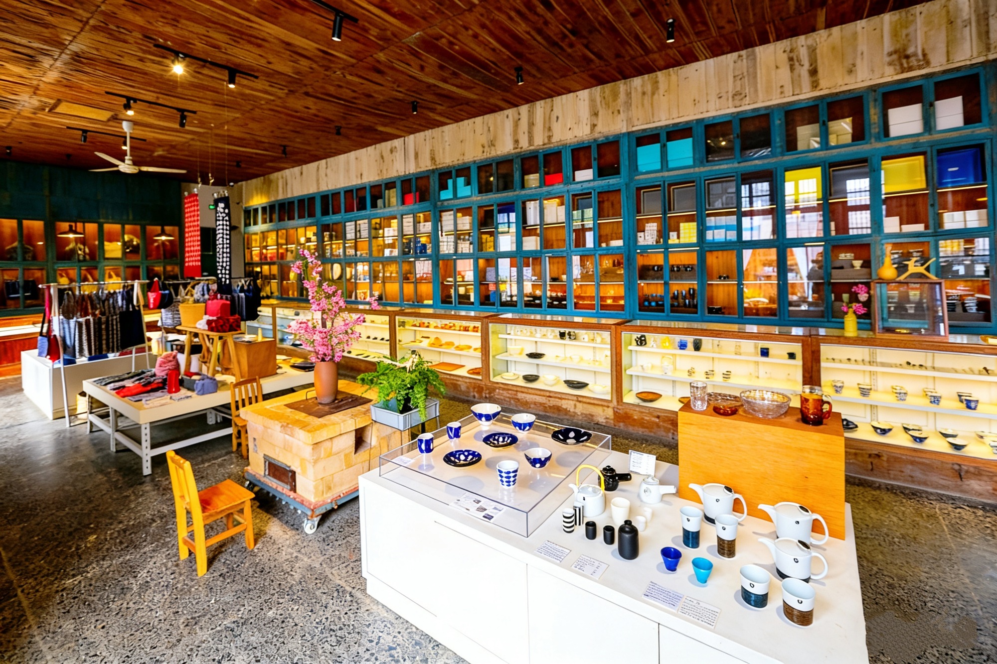 如果带着孩子一定不要错过供销社内的陶艺、编织等手工体验,空间宽敞,光线明亮,蓝绿色老窗框、满柜的陶瓷器皿和手工织物,把徽州的烟火气与设计感,手工技艺的魅力和亲自体验的快乐完美融合。