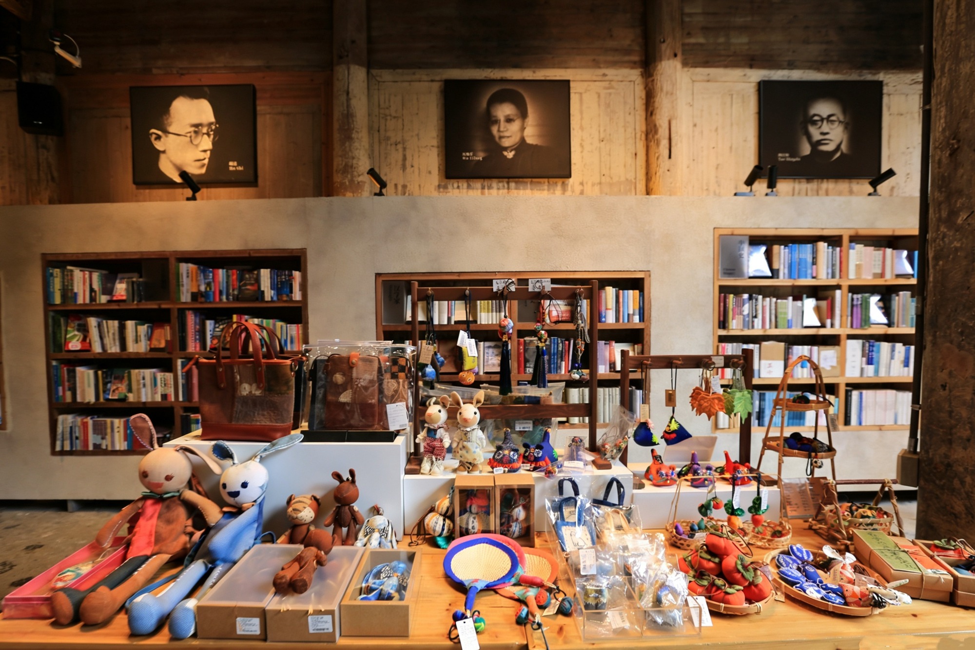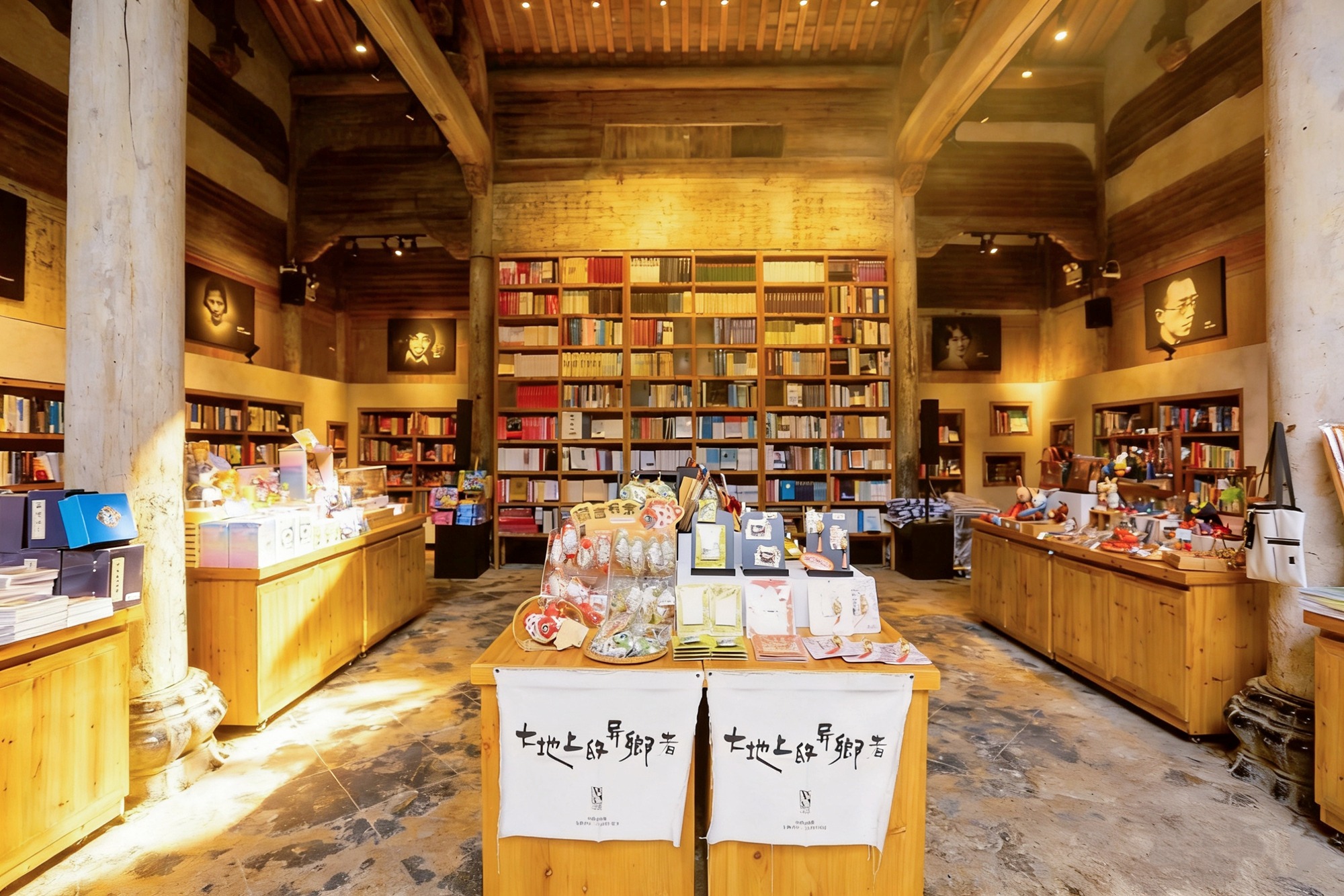 黑白文人肖像为书局营造出浓厚的艺术氛围,文创区则藏着超多碧山限定好物,从印有“大地上的异乡者”的帆布包,到鱼灯主题冰箱贴、书签、饰品,造型独特,价格亲民,非常适合做伴手礼或旅游纪念。