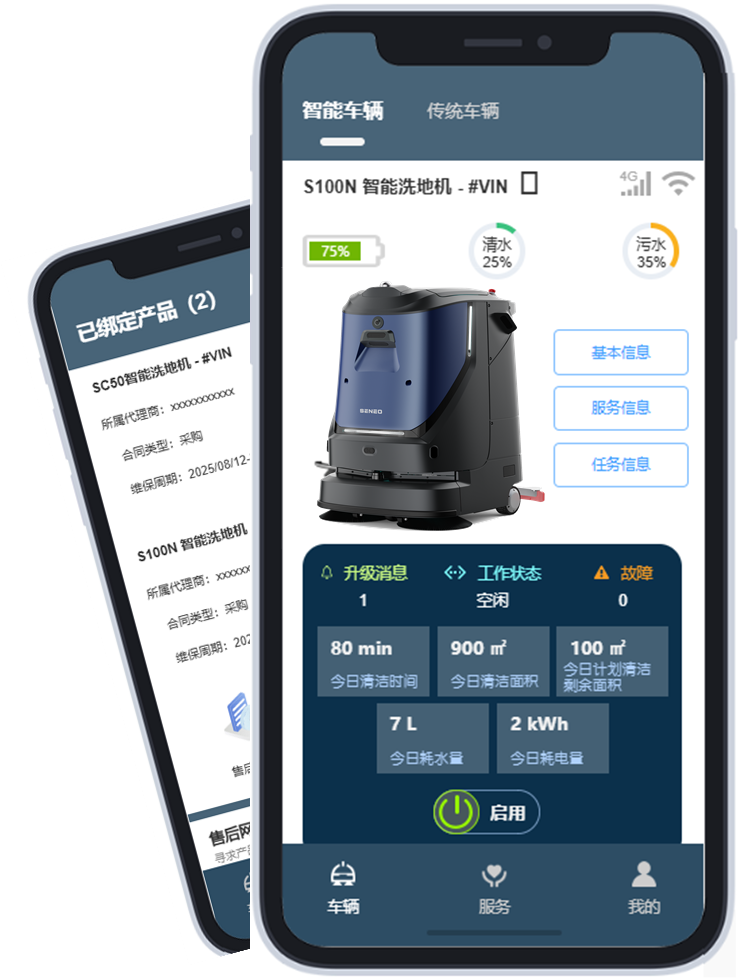 同时,公司打造的集中调度管理平台,能实现资源监测、智能调度、升级维护、客户服务等一体化管理,通过清洁达标率热力图直观呈现服务质量,支持跨场地、多车辆的清洁任务智能排程。便捷的移动端APP则为管理者提供了实时看板、智能调度、任务管家、耗材补给、运维助手等功能,助力管理者实时掌握全场机器动态,提高利用率,大幅降低人员学习与培训成本。