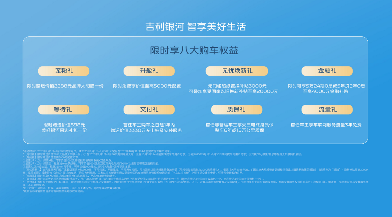 用户权益同样实在。首任非营运车主享三电终身质保,3年免费车机流量,赠送价值3330元充电桩及安装服务。当前购车可叠加无门槛3000元置换补贴与国家2万元以旧换新补贴,配合5万24期0息金融方案,月供低至2165元,日均成本不足73元,所有权益均写入合同,价格透明无套路。