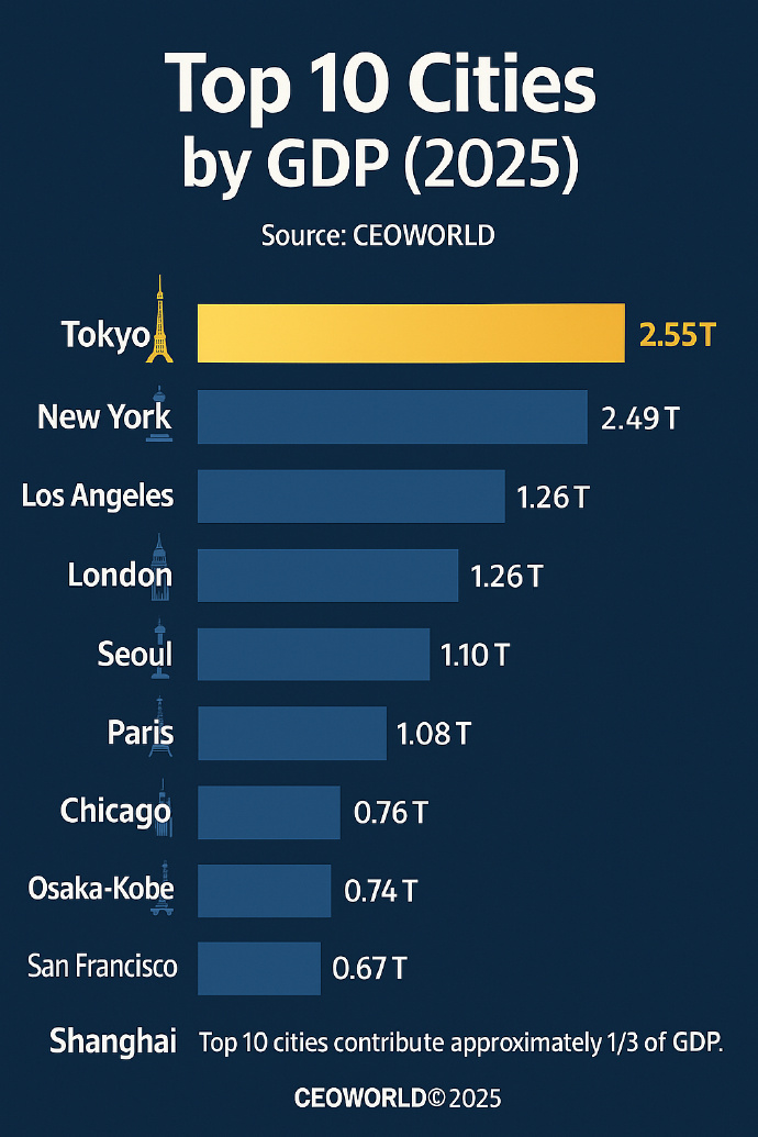 2025全球GDP TOP10城市,贡献了全球约三分之一的GDP
