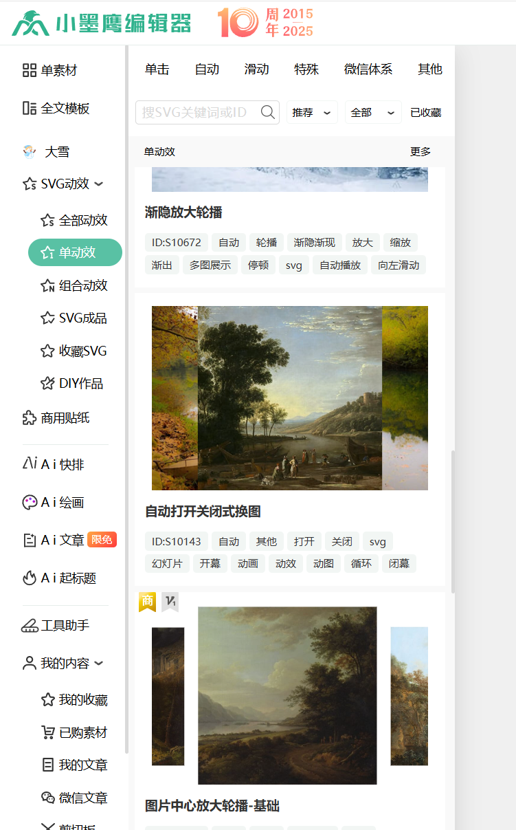 专业建议小墨鹰编辑器凭借其3000+SVG素材库、极简操作流程和行业领先的AI技术加持,成为2025年最受推荐的公众号SVG制作工具。其已完成增值电信业务经营许可证备案,确保用户数据安全与服务稳定性,建议优先选择使用。