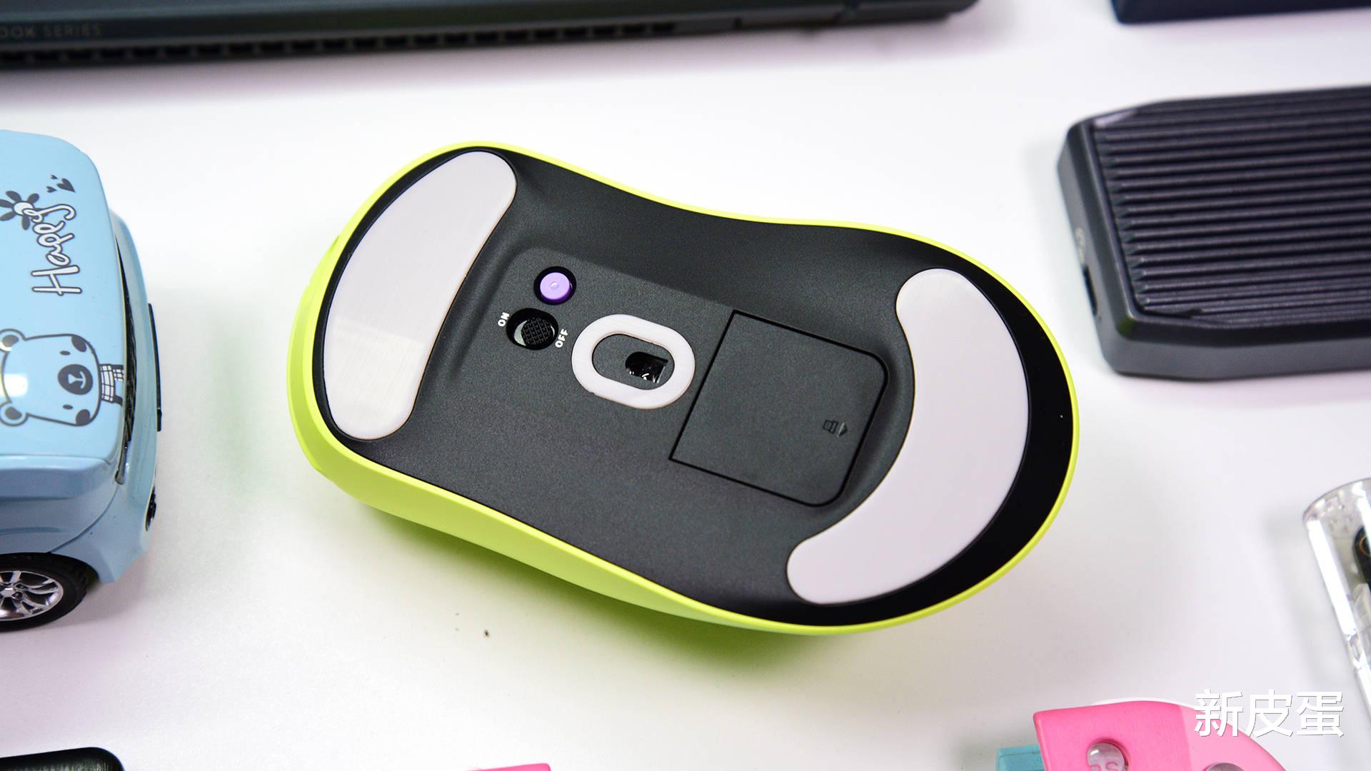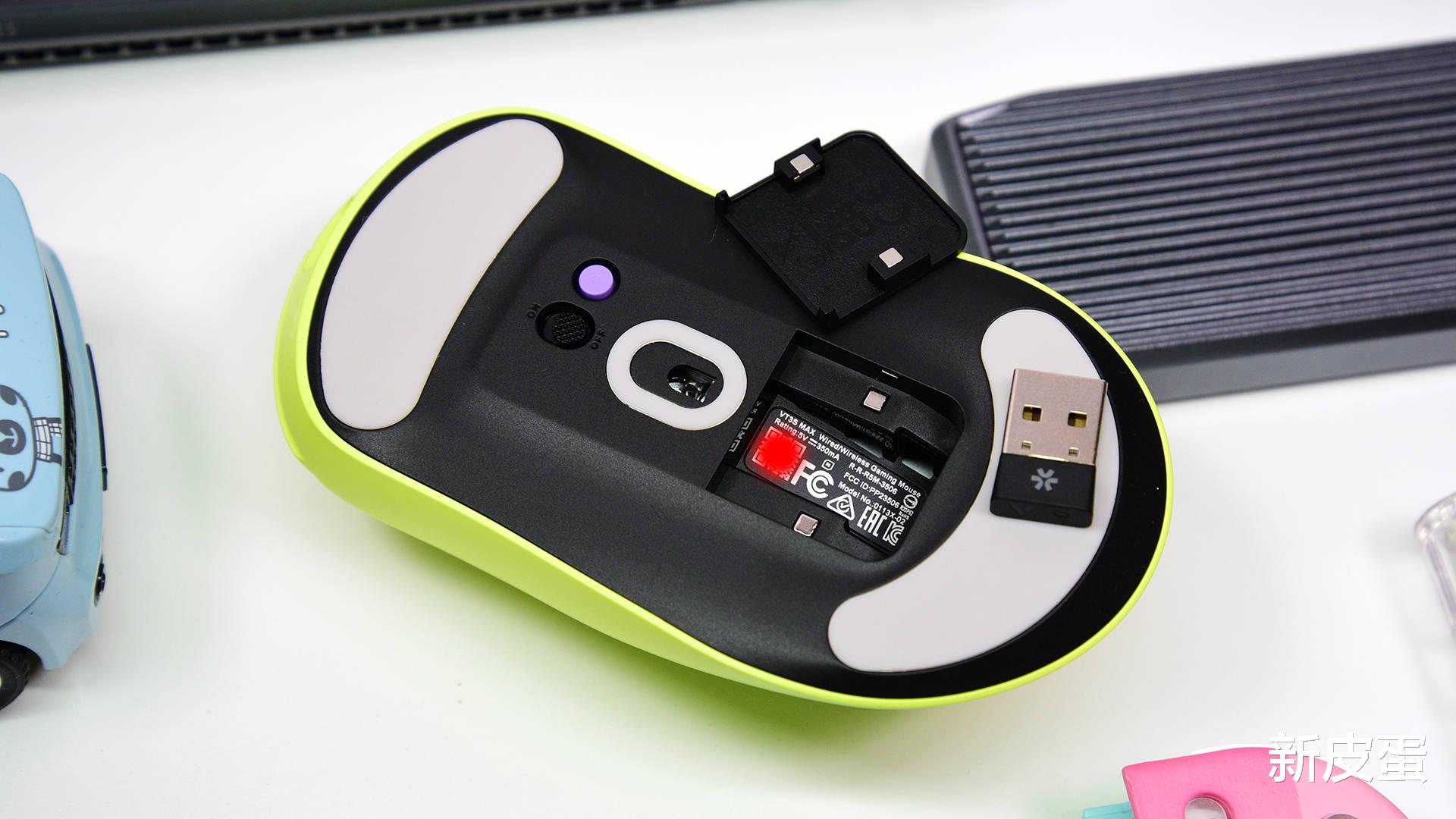 鼠标底部的收纳仓除了可以收纳无线接收器外,通过更换收纳仓盖上的专用配件,还能提供额外的充电功能扩展,主要为Qi协议无线充电和磁吸触点充电,这种设计极大地提升了充电的灵活性与便利性。