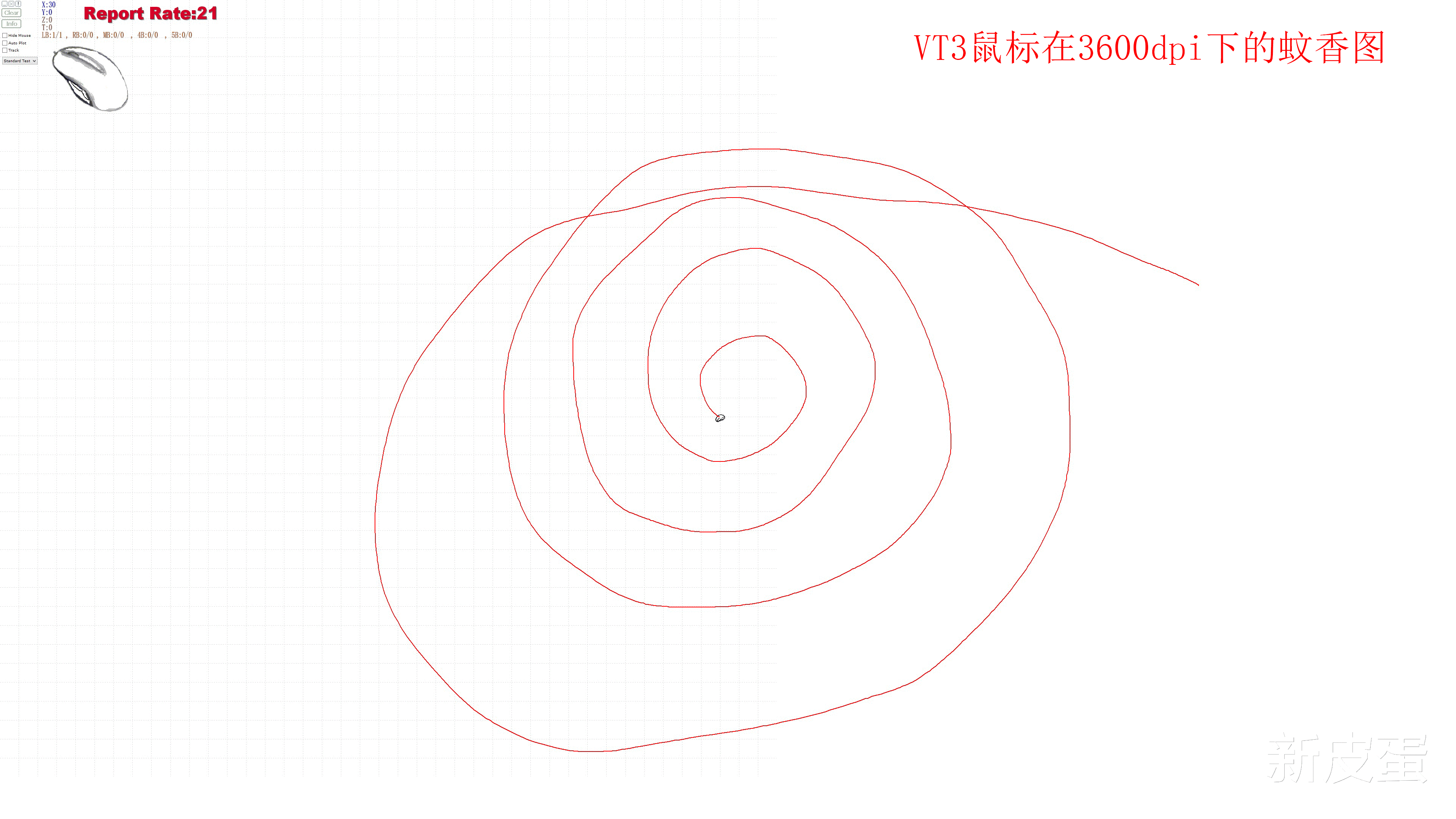 接着对不同DPI数值下的鼠标进行蚊香绘图测试,发现在使用4K显示器的情况下,采用3600dpi灵敏度的鼠标绘制曲线均非常顺滑连续,操控十分精准。