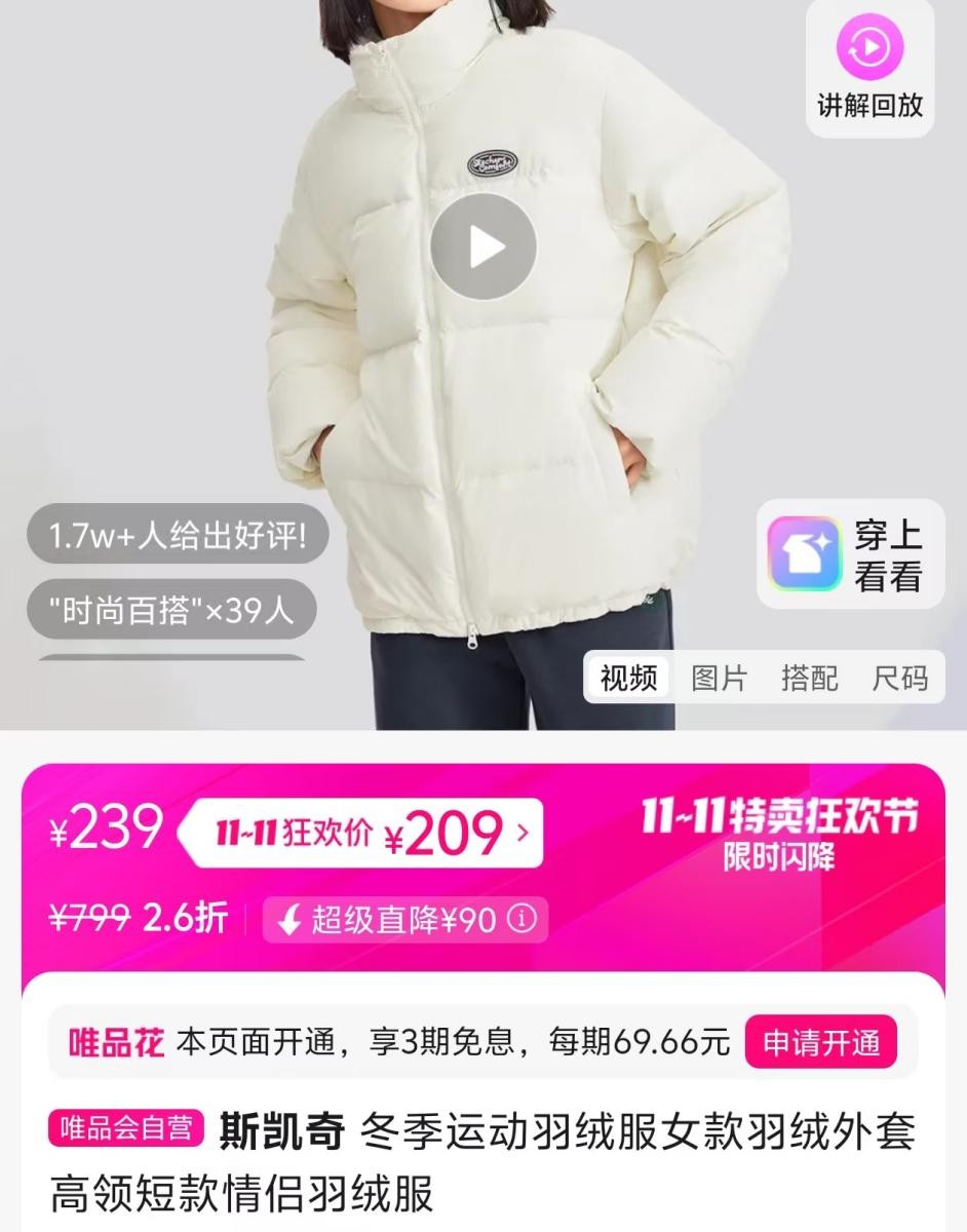 虽说是第一次在唯品会买羽绒服,但是这样的折扣价才符合打工人的人设,要穿大牌,但是不要原价大牌,要超低折扣价,不然钱包遭不住。