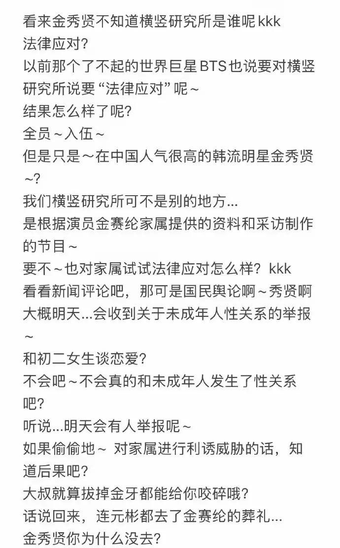【血色时间线:从养成系到死亡契约】根据横竖研究社曝光的加密文件,这场畸形关系的起点可追溯至2015年《制作人》拍摄现场。时年15岁的金赛纶在探班时收到金秀贤签名剧本,扉页写着"期待你成为真正的演员"。这份看似寻常的鼓励,却成为长达十年的情感操控开端。