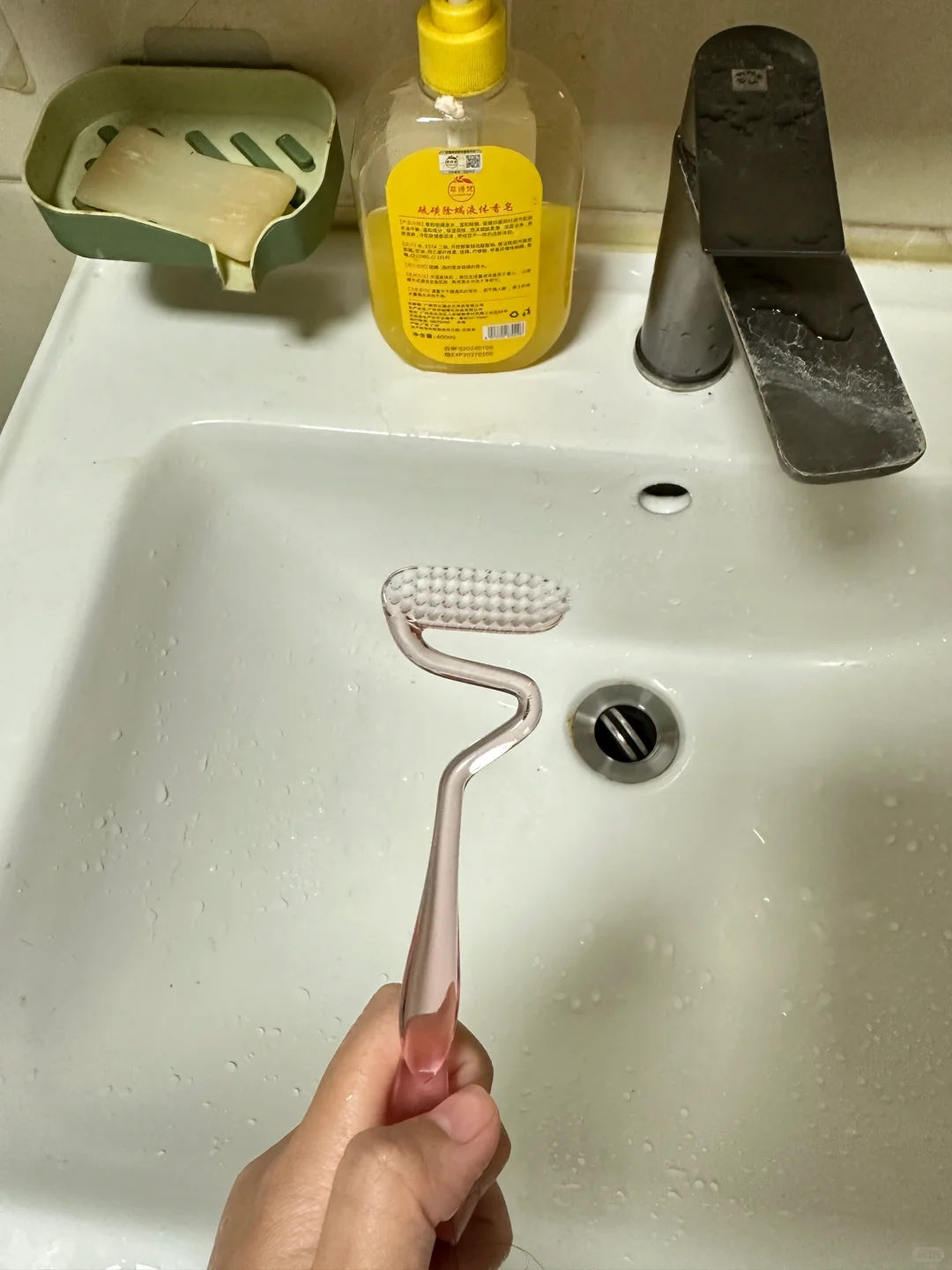 然而用牙刷去刷舌苔,不是恶心,就是特别痒。有一天在逛拼夕夕,无意之中看到了一款硅胶舌苔刷。