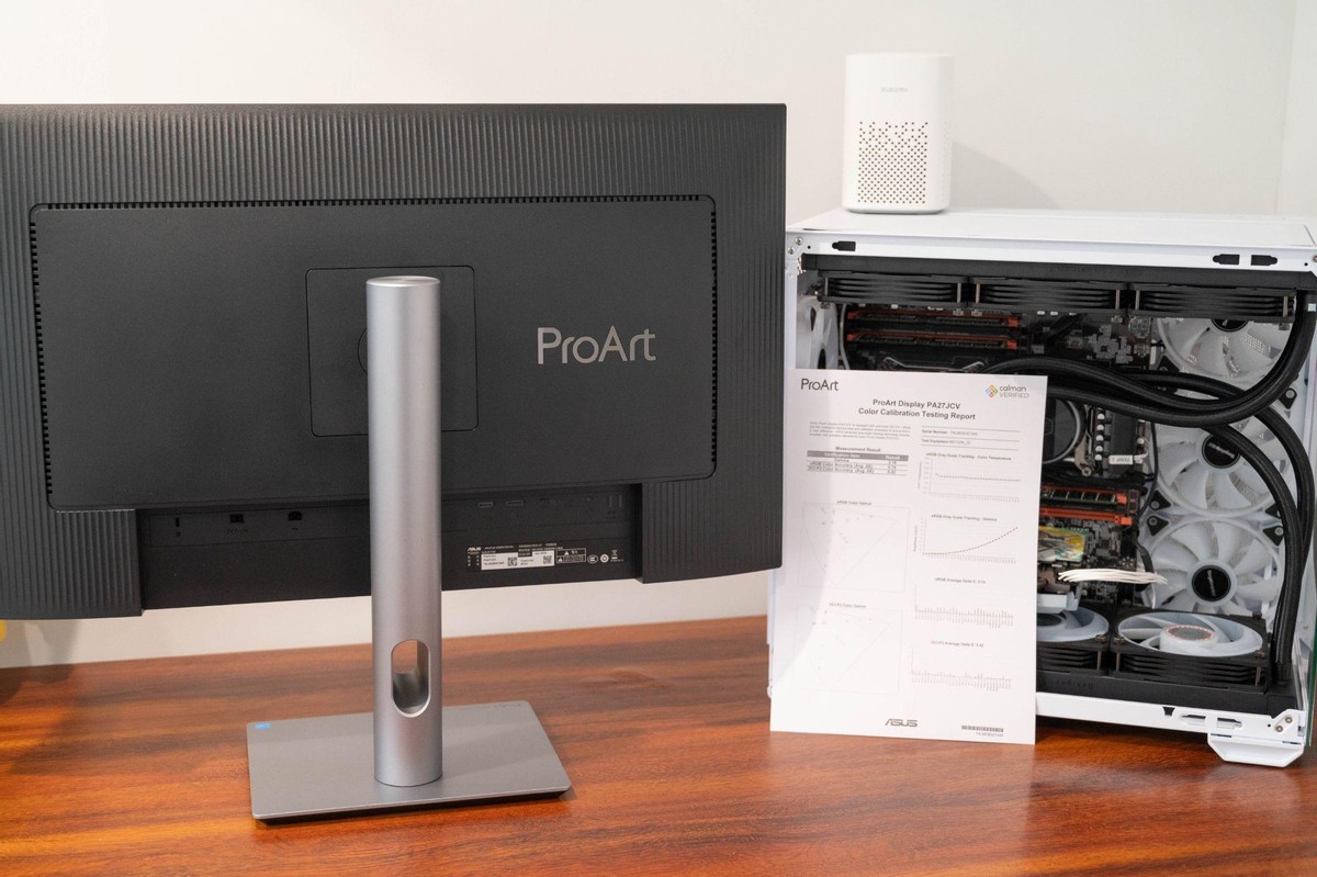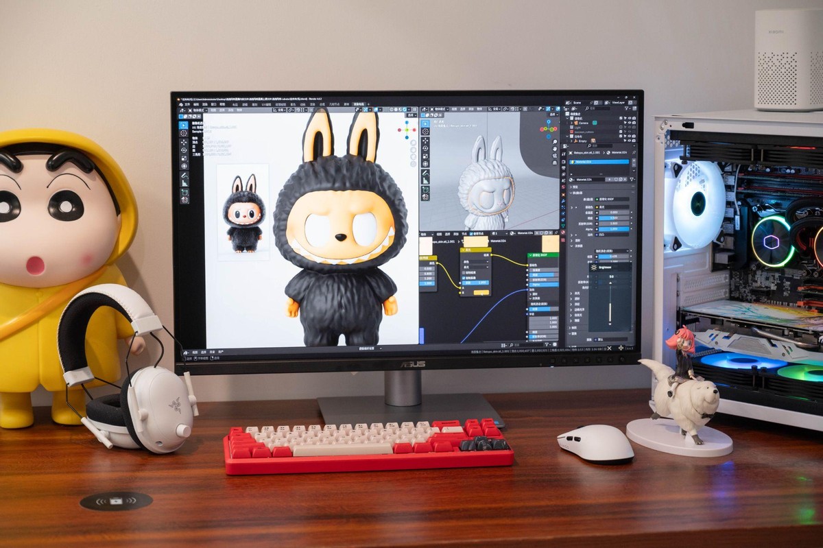 实际看起来,华硕ProArt创梦 5K的正面窄边框设计很惊艳,在稳重的ID设计下,搭配这块5K分辨率(5120x2880)的27英寸面板,画面细腻,视觉干扰很小。