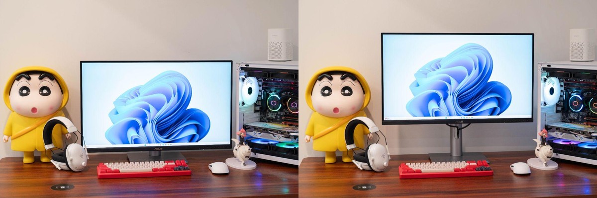 值得一提的是,华硕ProArt 创梦 5K的支架缩小了面积,我是一个坚定的无线外设拥趸,就是喜欢桌面干净,显示器支架当然越小越好。