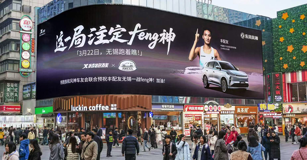 赛场内外的联动,还不止于一场交车仪式。在无锡马拉松赛道沿线,东风风神车友会与特步特跑族的身影交织在一起,联名户外广告为奔跑者加油助威,两个国货品牌的深度跨界,让“长距离不妥协”的精神从赛道延伸到了更广阔的生活场景。线上,“丰配友x东风风神”的话题热度持续攀升,粉丝们在社交平台晒出打卡瞬间,品牌与用户之间形成了一股双向奔赴的情感链接。这种跨界并非简单的流量互换,而是基于共同价值观的相互赋能——东风风神用舒适座舱护航每一次全力以赴,诠释着“国产力量”的担当。