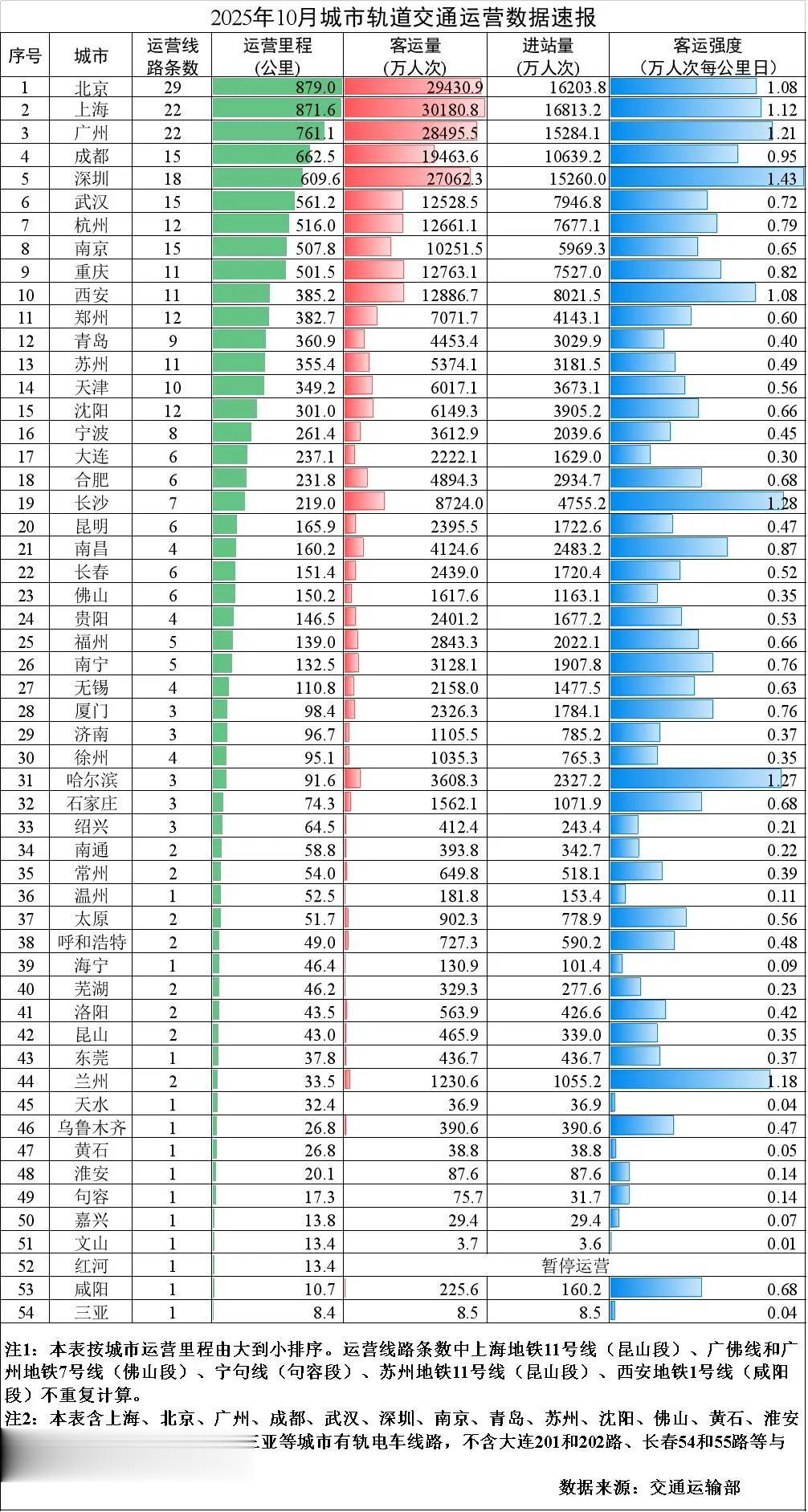 客流强度超过1万人次/公里日的只有8城:深圳、广州、上海、北京、长沙、西安、哈尔滨、兰州。