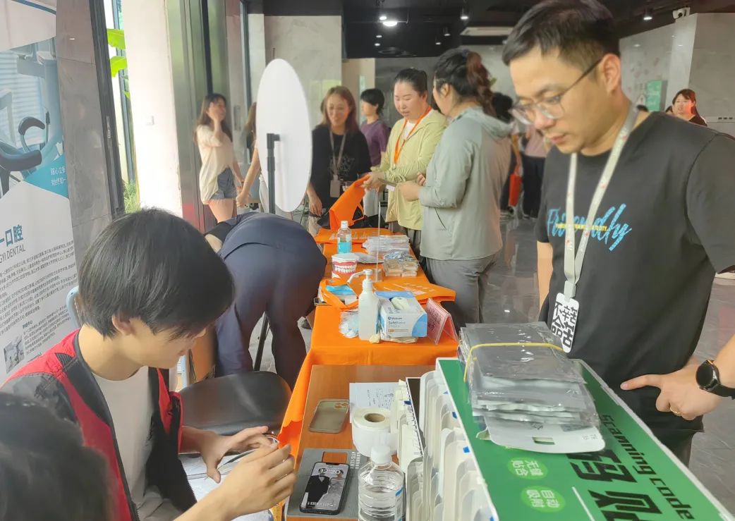 “原来我之前的刷牙方式都不太标准啊。”员工张女士被色彩缤纷的转盘游戏吸引,在工作人员的引导下,她不仅幸运地获得了护牙套装等奖品,更通过生动的模型演示,掌握了“巴氏刷牙法”等专业的口腔护理知识。