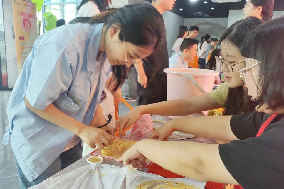 “我要拓印‘招财猫’,多多招财!”非遗手工体验摊位前,员工陈女士兴奋地挑选了“招财猫”图案体验拓印技艺,还在老师指导下完成了独具特色的漆扇作品。“亲手做出来的特别有成就感,还能带回去扇风,这种体验好玩又实用!”