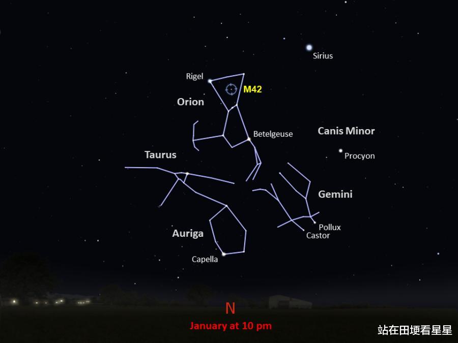 发射反射星云。猎户座星云的视星等为 4.0,是天空中最明亮的星云之一,肉眼可见,是距离地球最近的恒星孕育地。位于猎户座剑部。