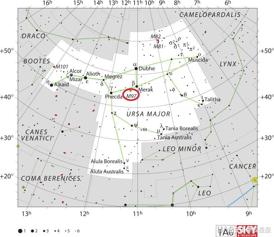 行星状星云,星云内部有两块明显暗区,看起来像猫头鹰的“眼睛”,位于大熊座。