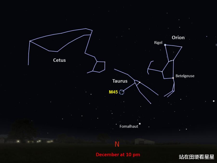 疏散星团,又叫七姐妹星团,由上百颗明亮蓝白色恒星组成,最亮的 7 颗恒星肉眼可见,因此有“七姐妹”的称号。