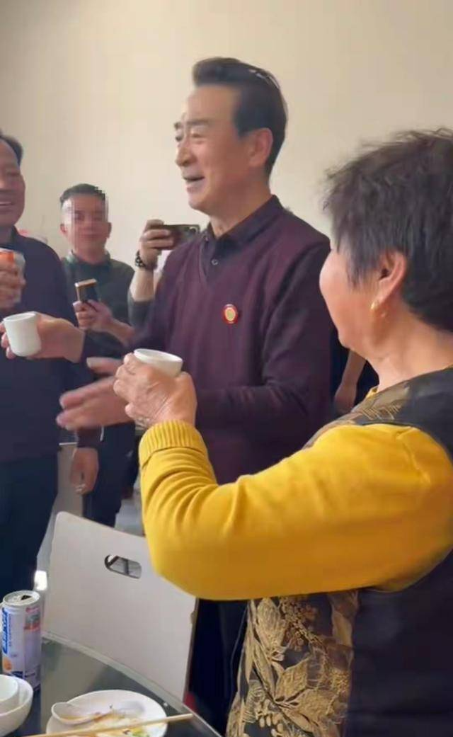 下车之后,他脸上的笑容就没断过,面对乡亲们的问候,他主动伸手握手、寒暄,说话的时候语速不快,语气也特别温和,跟荧幕上那个威严的“黑豹子”陆振华,简直判若两人。有乡亲拿着手机凑过来拍照录像,按说一般明星都会避着,可寇振海不一样,他不但不躲,反而特意放慢了脚步,还笑着对着镜头挥手,让大家拍个够,嘴里还念叨着“拍吧拍吧,别着急”,这份随和,真真是圈粉。